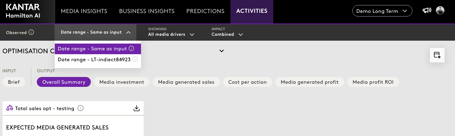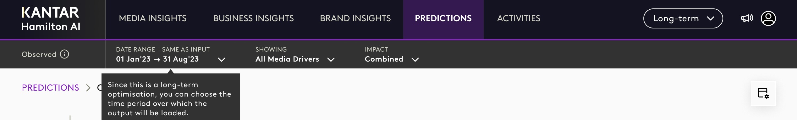 When an optimisation includes long-term effects, a period selector will appear in the top navigation menu.