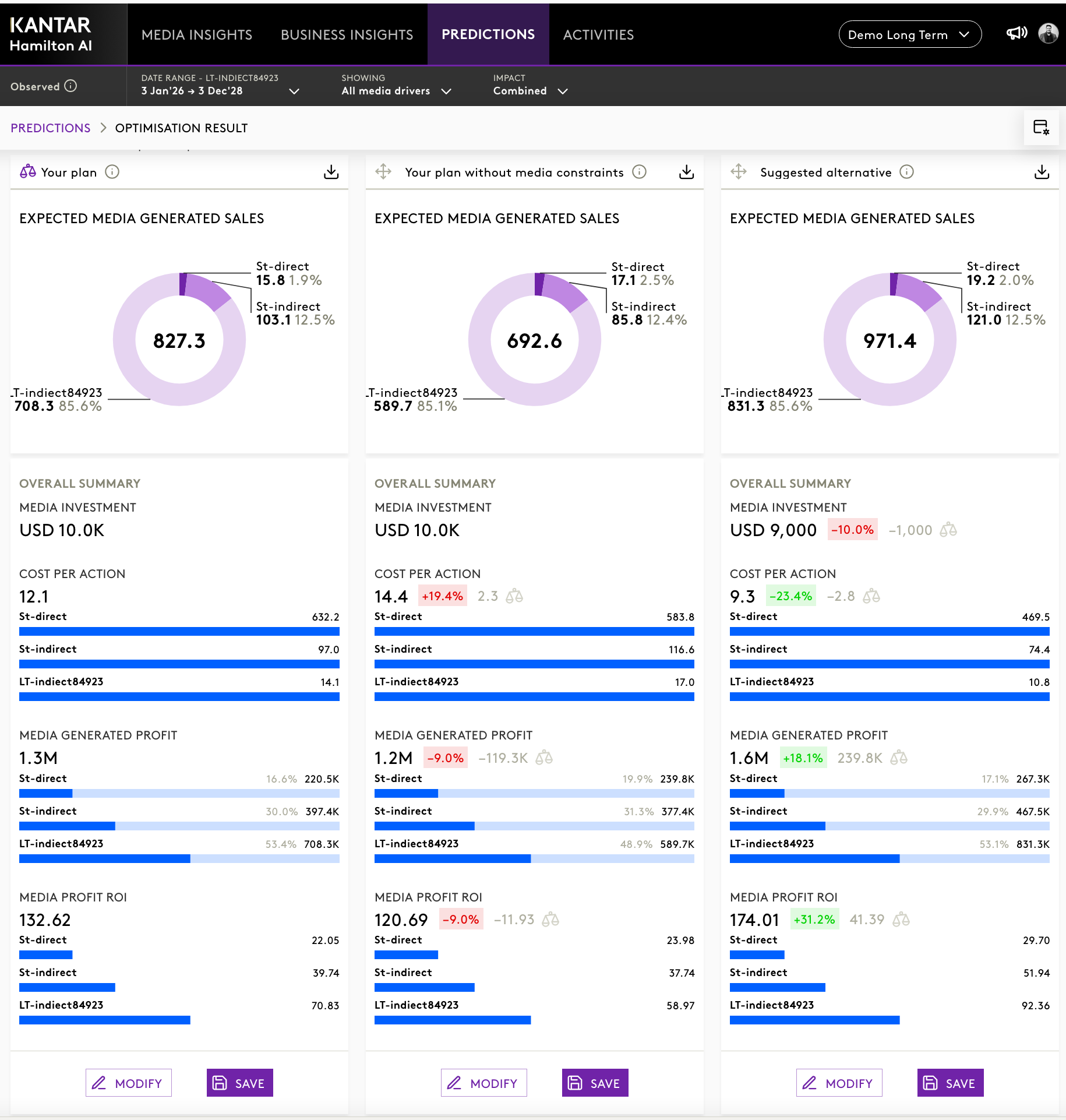- Long Term – Displays results inclusive of long-term effects (for example, incorporating up to 90% long-term impact).