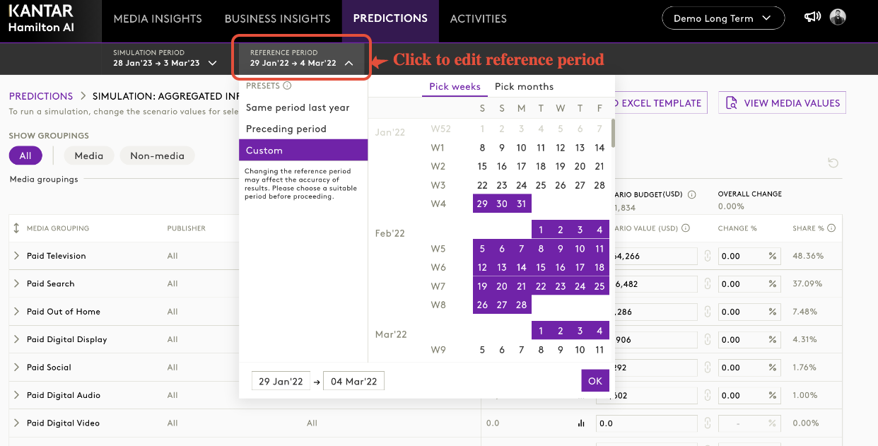 A new enhancement now lets users select a custom reference period for baseline effect calculations in Simulation.