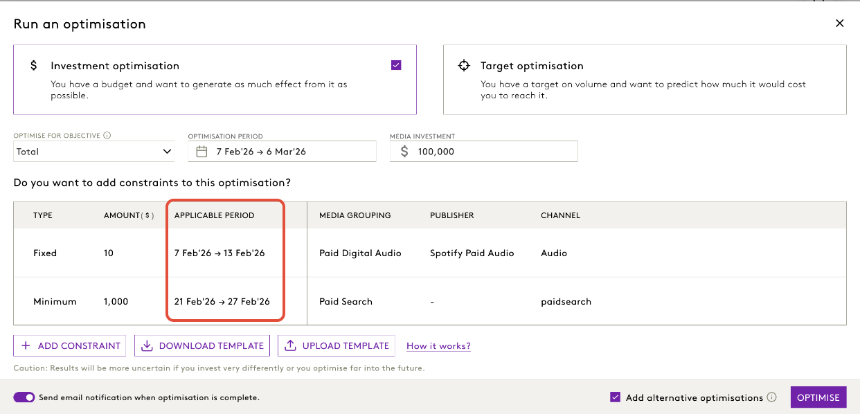 For more details on optimisationconstraint templates, click here.