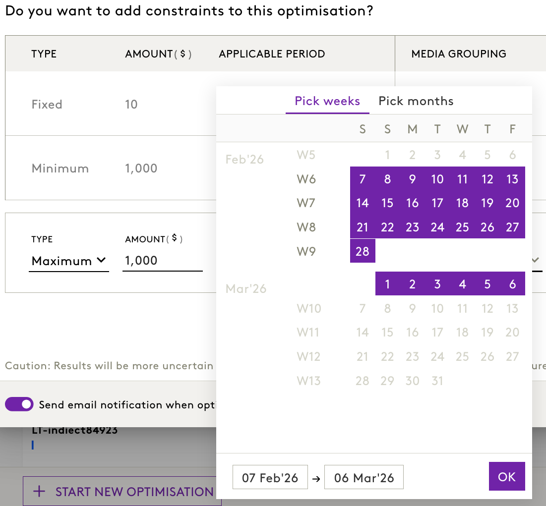 - Choose the start and end date for the constraint