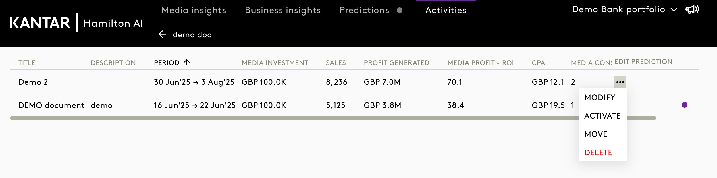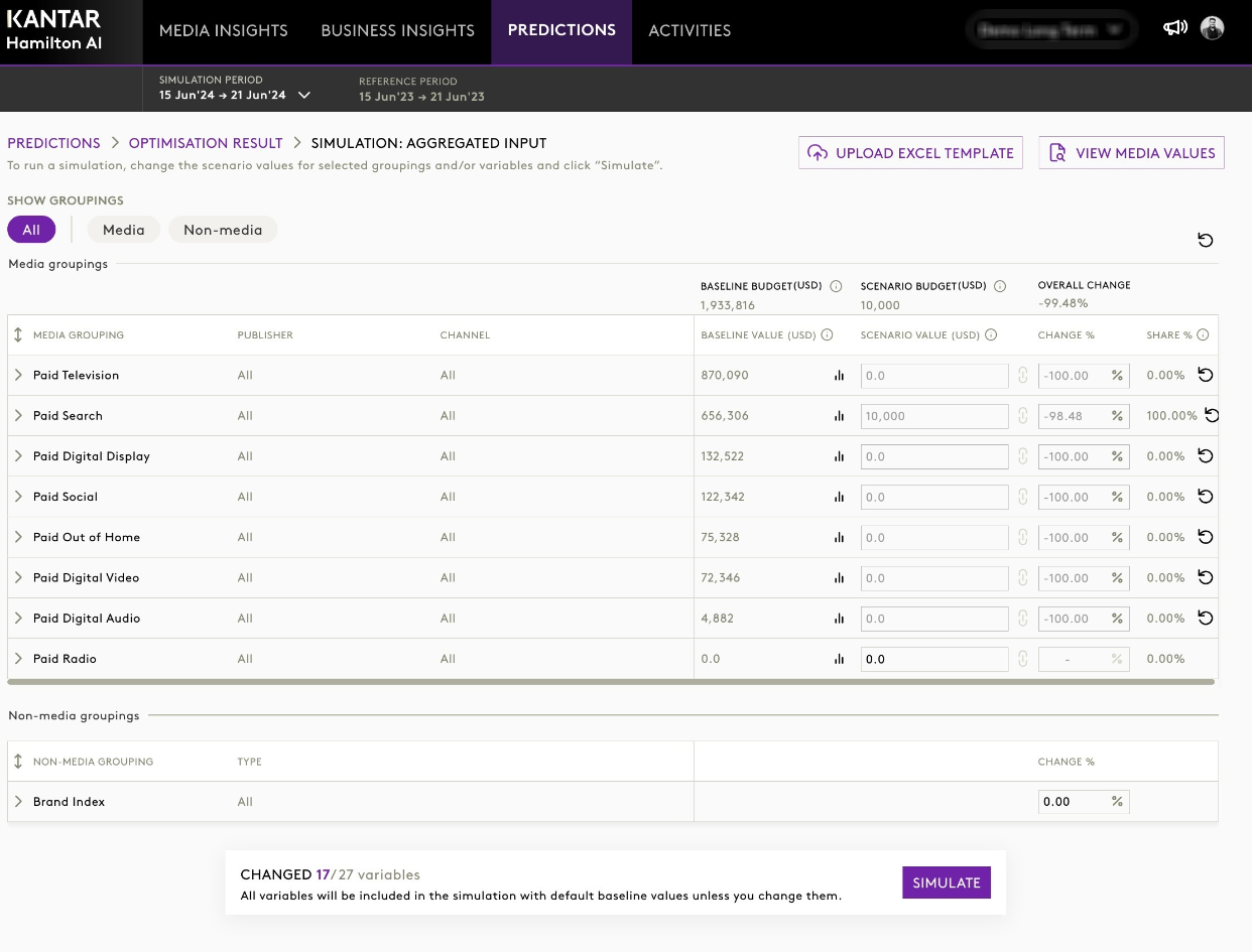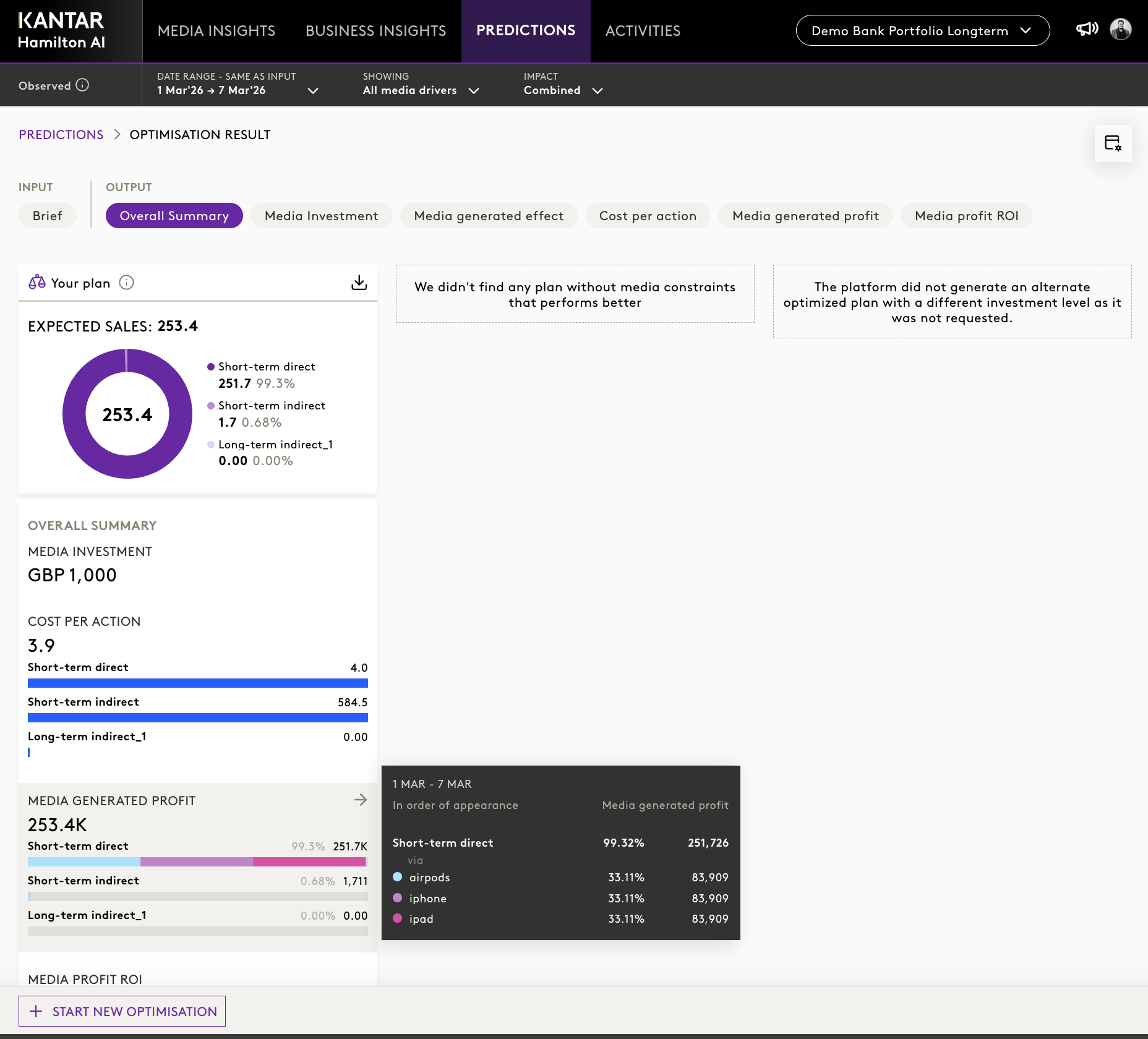 - The selected optimisation will be highlighted in the Media Insights timeline for tracking actual vs predicted performance.
