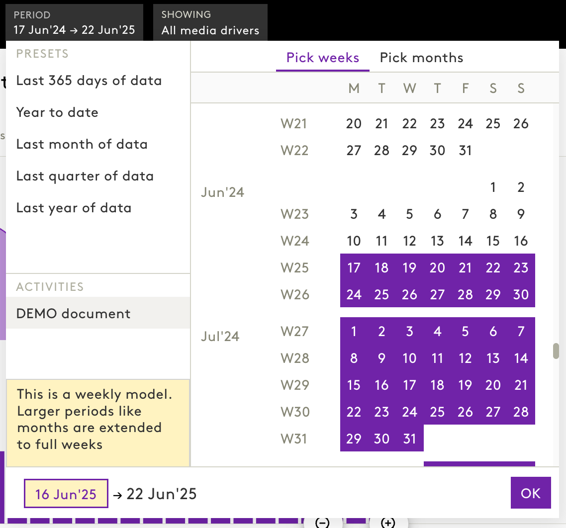 - Use the calendar tool to select the applicable time period for your optimisation (e.g., January–March 2025).