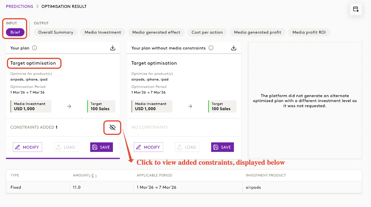 When selected, the system runs multiple optimisation scenarios in parallel, including an unconstrained version, to help identify the best possible outcome.