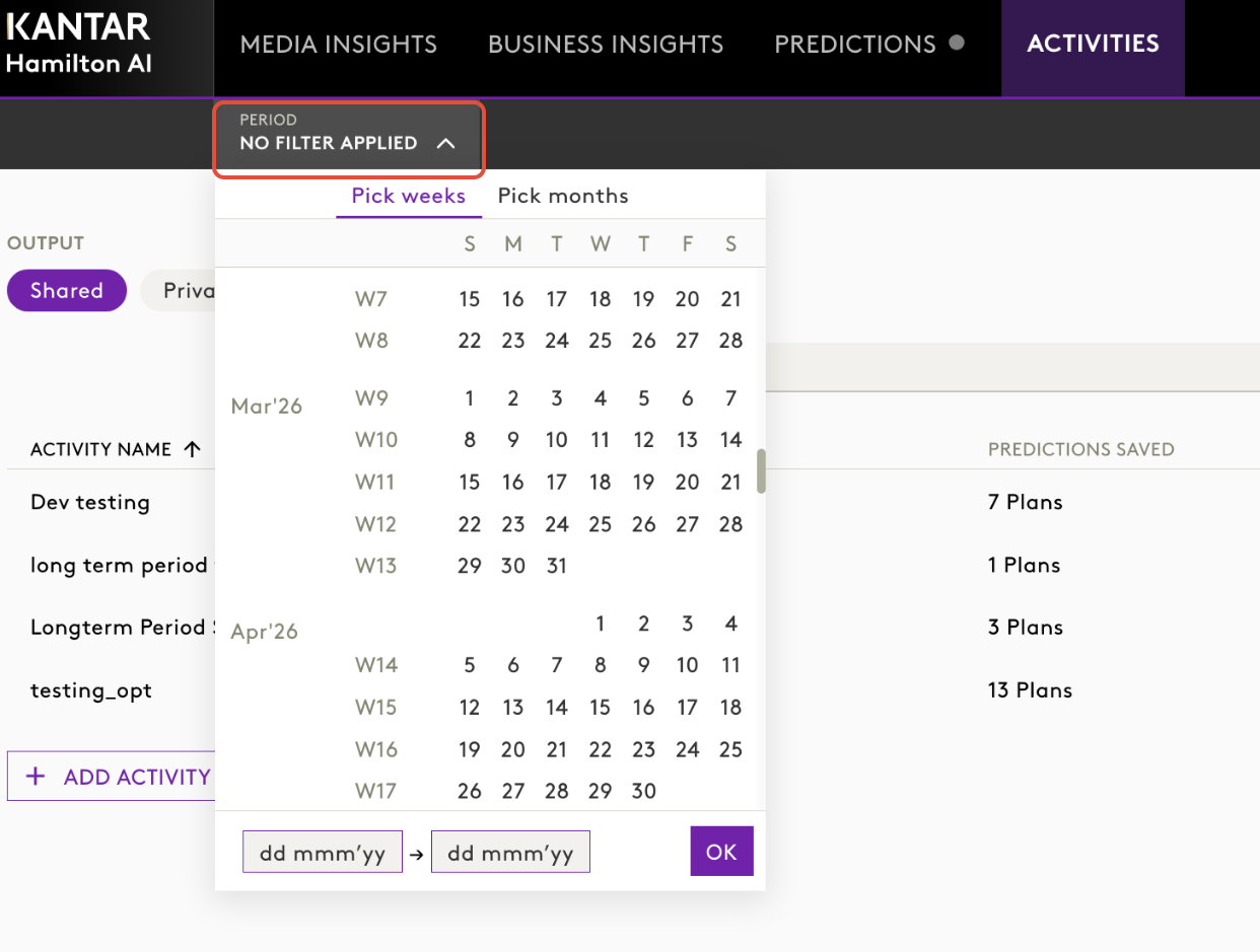 2. You can use the period filter to select specific time frame of your saved activity.