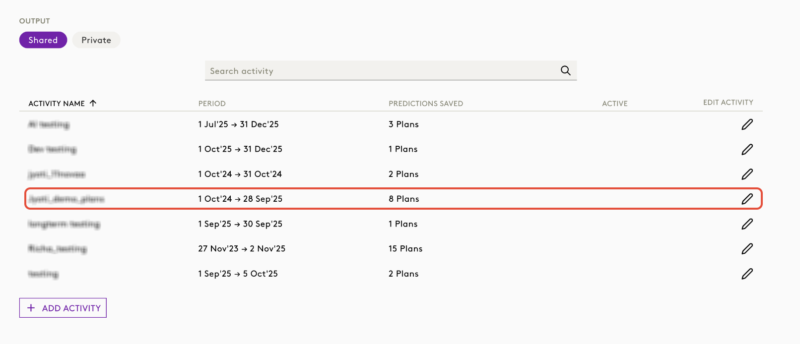 - Accessible via the Saved Plans section in the Activity module.