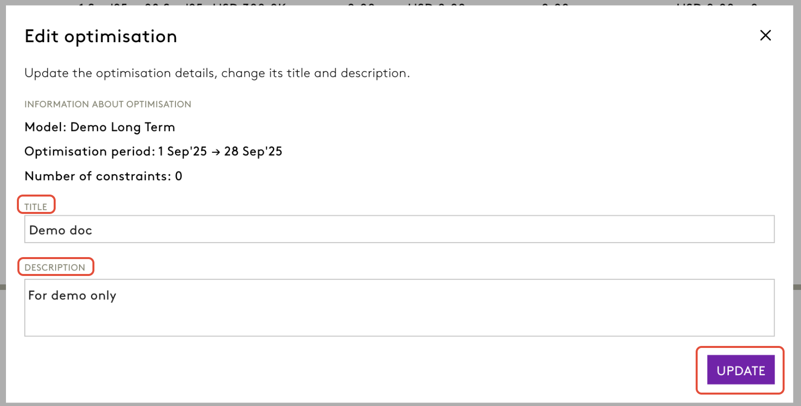 - Users can now update the title and description of saved simulation or optimisation plans after creation.