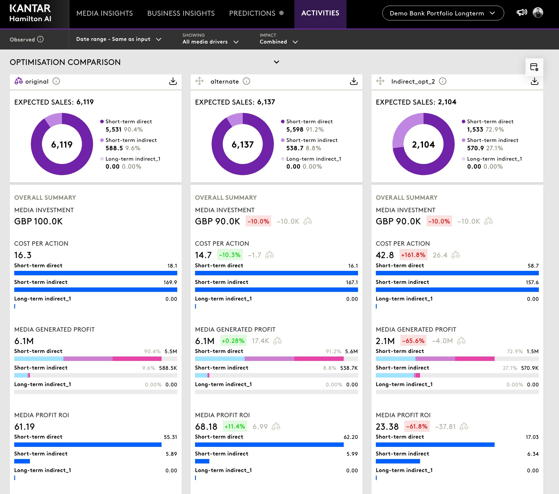 - Long Term – Displays results inclusive of long-term effects (for example, incorporating up to 90% long-term impact).