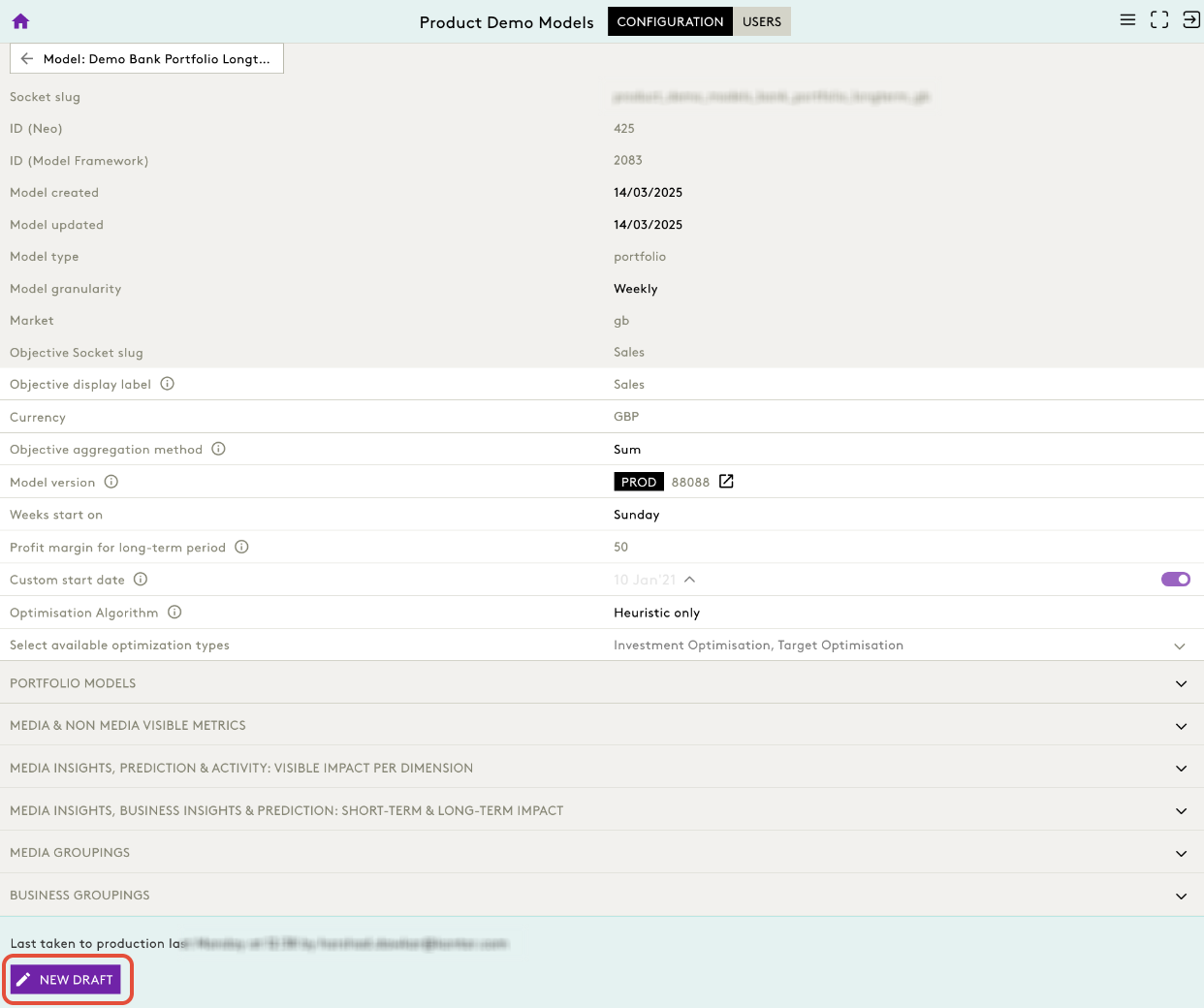 1. Open the Model Configuration