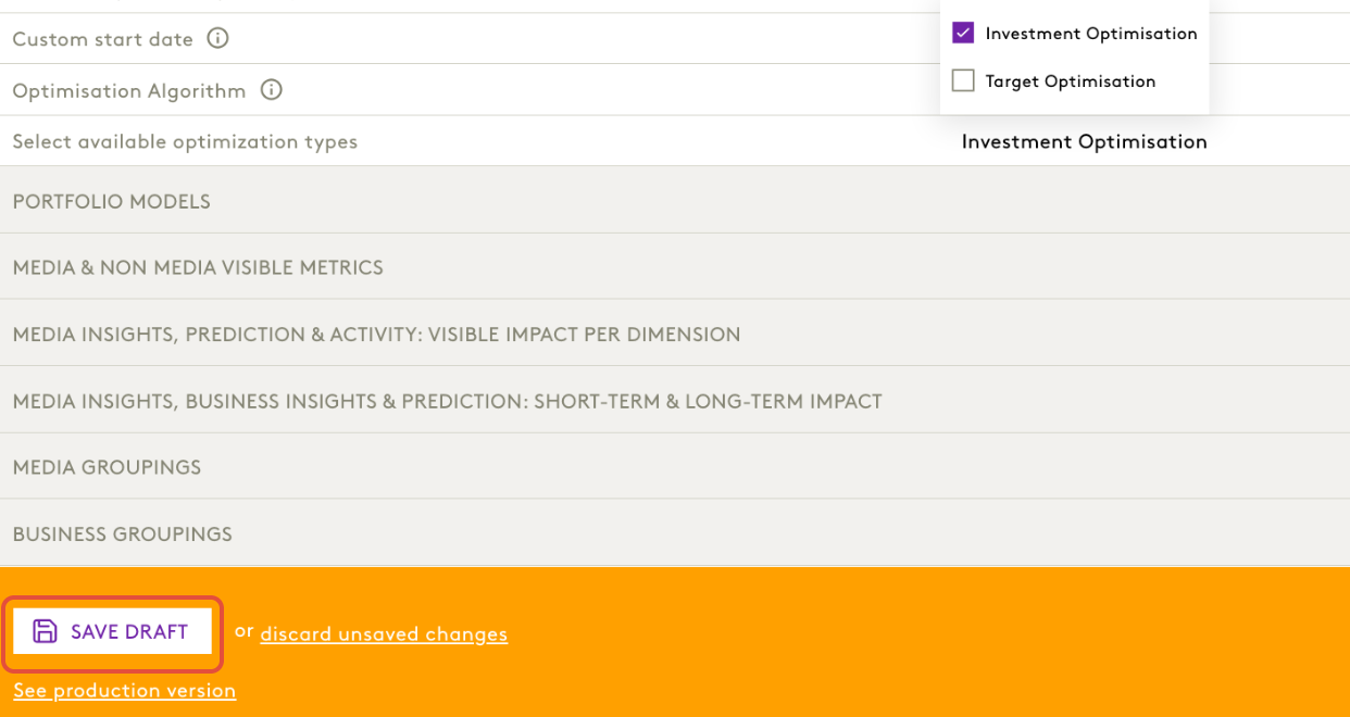 Click on arrow to find: Investment Optimisation, Target Optimisation