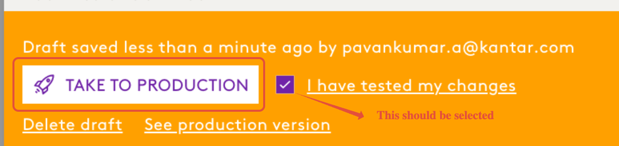 - Once validated, click Take to Production